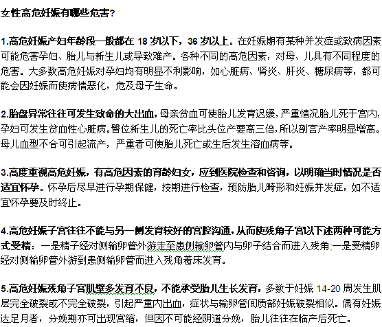懷孕是一件令人高興的事情,它是生命的延續(xù),也是愛的結晶。但是懷孕的女性是最害怕碰上高危妊娠癥,因為這會讓懷孕成為很危險的事情,相信很多人都想知道高危妊娠會給女性帶來哪些危害,下面醫(yī)學教育網(wǎng)小編就來為大家詳細介紹一下吧。