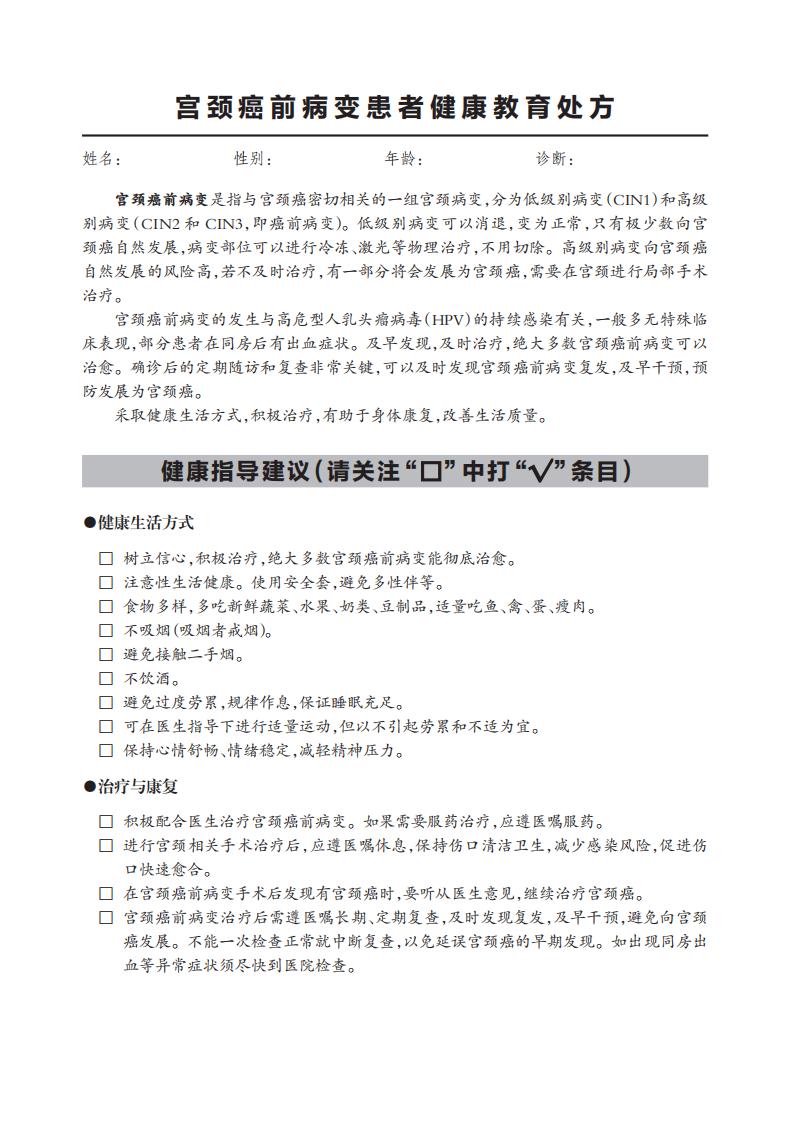 宮頸癌前病變的發(fā)生與高危型人乳頭瘤病毒(HPV)的持續(xù)感染有關(guān),一般多無特殊臨 床表現(xiàn),部分患者在同房后有出血癥狀。及早發(fā)現(xiàn),及時(shí)治療,絕大多數(shù)宮頸癌前病變可以 治愈。確診后的定期隨訪和復(fù)查非常關(guān)鍵,可以及時(shí)發(fā)現(xiàn)宮頸癌前病變復(fù)發(fā),及早干預(yù),預(yù) 防發(fā)展為宮頸癌。 采取健康生活方式,積極治療,有助于身體康復(fù),改善生活質(zhì)量。