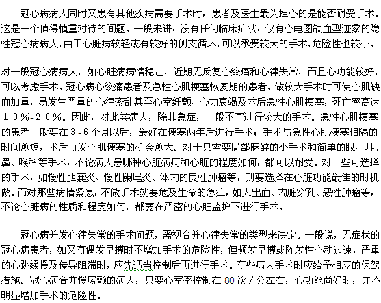 相信大家在看完由醫(yī)學(xué)教育網(wǎng)小編特地為大家編輯整理的以上內(nèi)容,大家都知道冠心病患者到底能不能接受外科手術(shù)了吧。