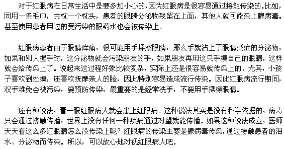 關(guān)于紅眼病的傳播有很多種說法,有些說法正確而有些說法是有誤的,下面小編帶大家了解紅眼病到底能怎么樣傳播。