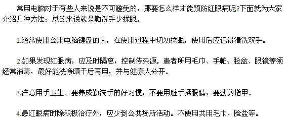 隨著電子產(chǎn)品的增加,人們已經(jīng)生活在電子產(chǎn)品的中間。但是此時隨之而來的是電子產(chǎn)品帶來的傷害,最常見的就是眼科疾病了,其中紅眼病就是電子產(chǎn)品危害的最直接表現(xiàn),生活和工作中,大多數(shù)的人們都需要面對著電腦,因此紅眼病的人們越來愈多,那么大家知道如何能夠避免電腦一族患有紅眼病嗎?接下來的文章就來為大家介紹,電腦一族預(yù)防紅眼病的方法。