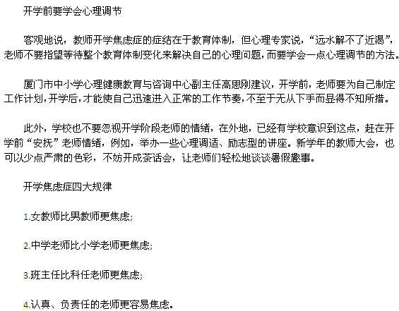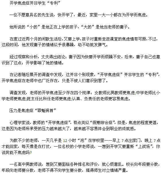 現(xiàn)在各行各業(yè)的壓力都很大,當(dāng)然也包括教師,每到開學(xué)前,不僅學(xué)生,一些老師也患上“開學(xué)焦慮癥”。