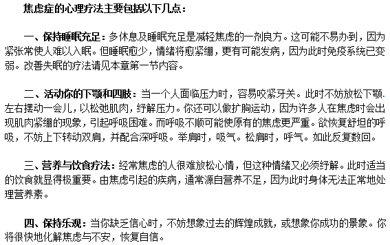 焦慮癥的心理療法可以將焦慮癥患者從心理障礙當中解救出來,因此得了焦慮癥之后一定要學會一些心理療法才行。當我們的情緒受到不良情緒干擾的時候要注意及早進行調(diào)節(jié),否則病情加重會給我們的心理健康造成很多不利影響。不少人對焦慮癥的心理療法不太清楚,下面就這個問題為大家詳細介紹。