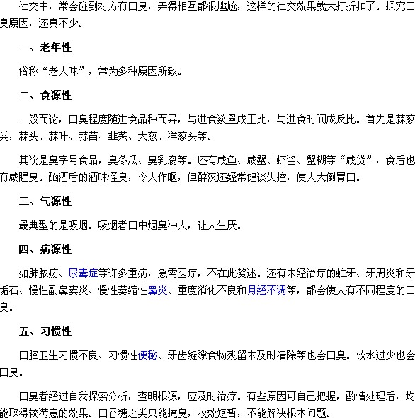 以上就是導(dǎo)致口臭的五大因素的相關(guān)內(nèi)容,相信大家對(duì)此已經(jīng)有所了解了,如患有口臭一定要查明根源,及時(shí)治療,希望上述文章能夠?qū)Υ蠹矣袔椭?/p>