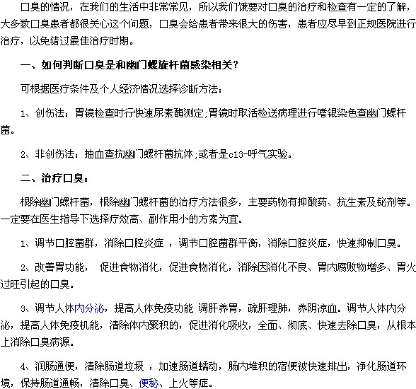 如何判斷口臭是和幽門螺旋桿菌感染相關(guān)?通過以上內(nèi)容的介紹,相信大家已經(jīng)了解了,在日常生活中要注意對(duì)口臭的預(yù)防,如果您出現(xiàn)了口臭類的癥狀,一定要及時(shí)進(jìn)行治療,平時(shí)也要注意護(hù)理的工作。