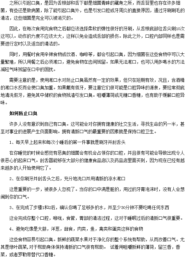 相信很多人都想知道如何防止口臭?除口臭的方法有哪些?下面請大家仔細閱讀醫(yī)學教育網(wǎng)編輯專門為您整理的“如何防止口臭?除口臭的方法有哪些?”這篇文章吧。
