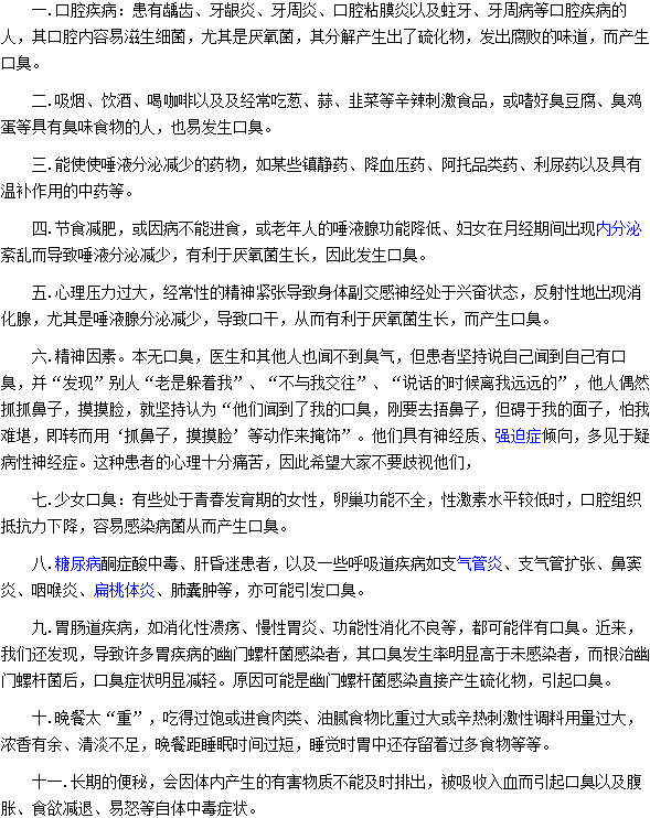 以上針對會導致發(fā)生口臭疾病的十一種因素做了詳細的介紹,患了口臭的朋友們一定要及時進行治療,病情注意日常的保健護理,讓自己生活早日健康。