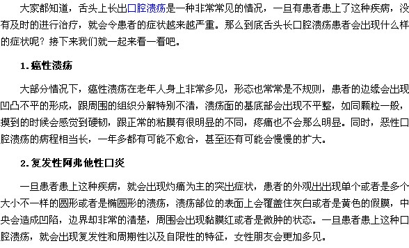 相信很多人會(huì)對(duì)舌頭長(zhǎng)口瘡患者會(huì)出現(xiàn)什么樣的癥狀比較關(guān)注,為此,醫(yī)學(xué)教育網(wǎng)編輯特地為您準(zhǔn)備了這篇關(guān)于舌頭長(zhǎng)口瘡患者會(huì)出現(xiàn)什么樣的癥狀的文章,希望對(duì)您有幫助。
