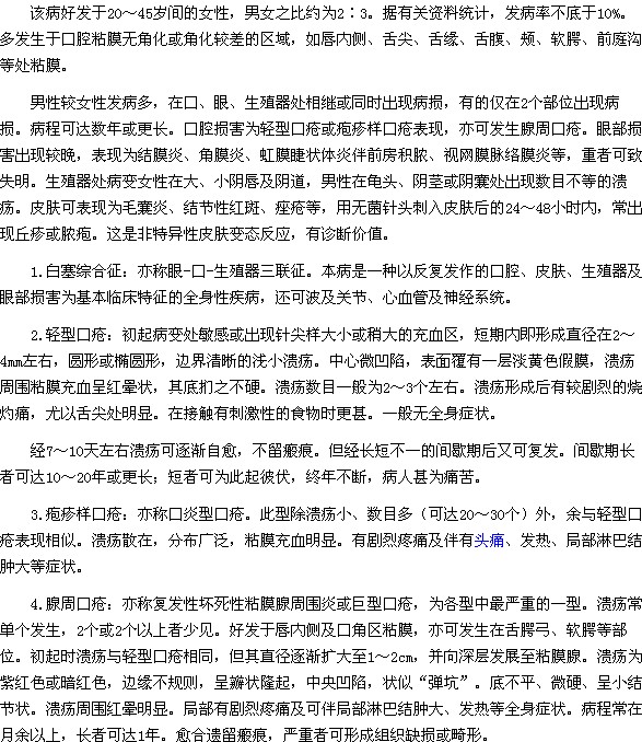 口瘡患者發(fā)病初期有哪4大癥狀表現(xiàn)?你了解這些發(fā)病初期癥狀嗎?為解答大家的疑問,醫(yī)學(xué)教育網(wǎng)小編特整理了“口瘡患者發(fā)病初期4大癥狀表現(xiàn)”的具體內(nèi)容,下面我們來看看詳細(xì)介紹: