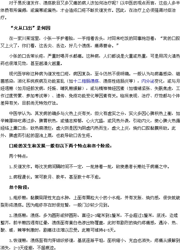 以上“口瘡發(fā)生和發(fā)展的特點及階段是什么?”的內容就為大家介紹完了,相信大家在看了上述文章以后,對口瘡發(fā)生和發(fā)展的特點及階段已經(jīng)有所了解,希望對大家有幫助。