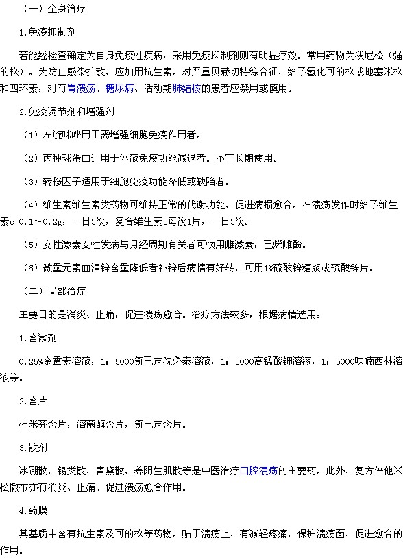 口瘡全身治療及局部治療的用藥方法是什么?很多患有口瘡的朋友都想了解口瘡全身治療及局部治療的用藥方法,為此,醫(yī)學(xué)教育網(wǎng)編輯特別整理了這篇關(guān)于“口瘡全身治療及局部治療的用藥方法”的文章,具體如下: