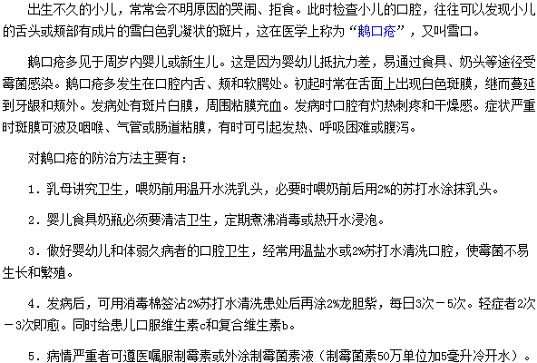 很多人都想了解對新生兒患上口瘡的主要防治方法,為此,醫(yī)學教育網(wǎng)編輯特別整理了這篇關(guān)于對新生兒患上口瘡的主要防治方法的文章,具體如下: