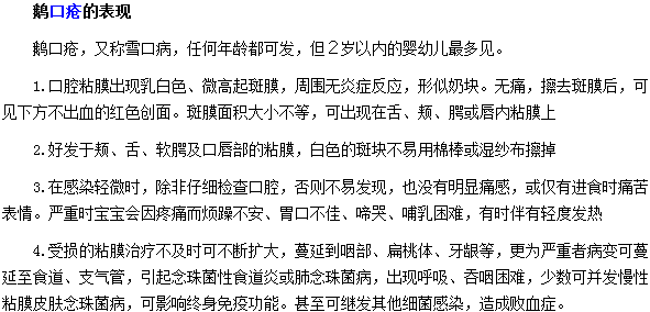 以上就是小兒患上鵝口瘡的四種表現(xiàn)及診斷的內(nèi)容,相信通過小編的介紹,大家對小兒患上鵝口瘡的四種表現(xiàn)及診斷已經(jīng)有所了解,希望上述內(nèi)容能夠幫助到大家,更多內(nèi)容請繼續(xù)關(guān)注醫(yī)學(xué)教育網(wǎng)。