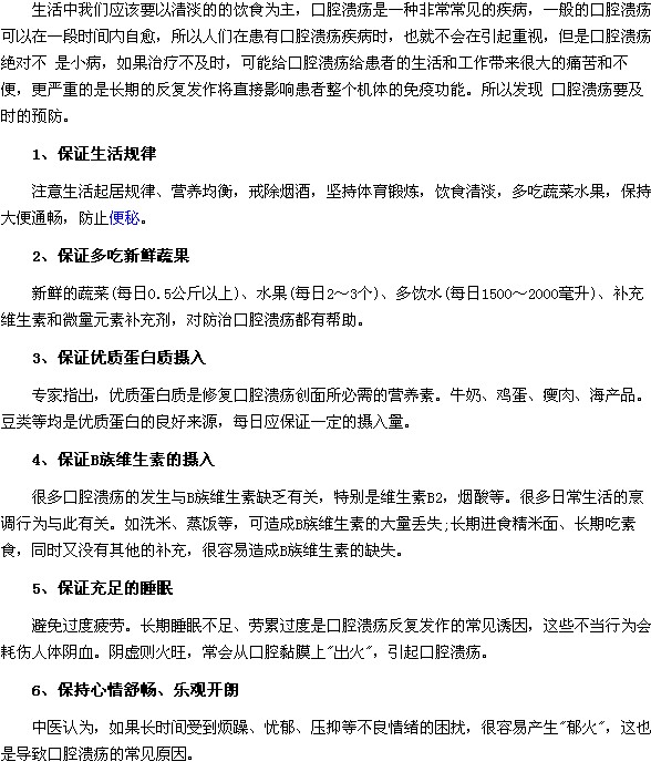 以上是“遠(yuǎn)離口腔潰瘍的8個(gè)保證1個(gè)注意”的相關(guān)內(nèi)容,希望對大家有所幫助。遠(yuǎn)離口腔潰瘍平時(shí)一定要多注意的口腔衛(wèi)生,勤漱口,多鍛煉,提高自身免疫力,這比一切藥物治療都有效!