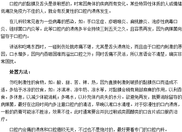 相信很多人都想知道患上口腔潰瘍應該如何處置?醫(yī)學教育網(wǎng)編輯為您搜集整理了患上口腔潰瘍應該如何處置的具體內(nèi)容,供您參考。