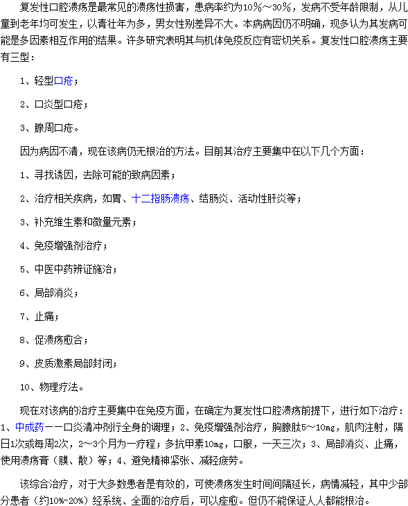 如果您或家人朋友患了復(fù)發(fā)性口腔潰瘍,相信這篇關(guān)于復(fù)發(fā)性口腔潰瘍的類型及治療的文章會(huì)對(duì)您有幫助,下面醫(yī)學(xué)教育網(wǎng)小編就整理了具體內(nèi)容如下: