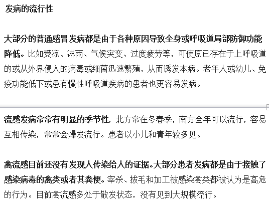 感冒、流感、禽流感的主要區(qū)別就在于感染的病原體不同。它們的早期臨床癥狀相似,但是病情輕重不一樣。希望通過一次門診檢查就確診目前還做不到,只能動態(tài)地觀察病情的變化。