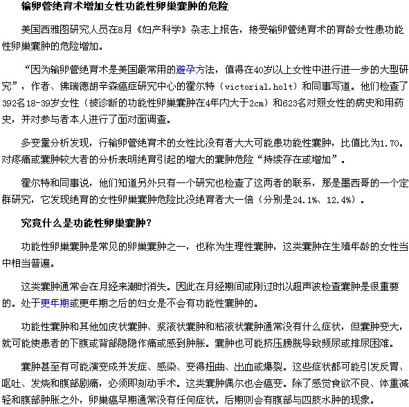 輸卵管絕育術(shù)會增加卵巢囊腫的危險,相信很多女性朋友對此都不了解,為了讓大家更好的了解相關(guān)知識,醫(yī)學教育網(wǎng)小編整理了“輸卵管絕育術(shù)會增加卵巢囊腫的危險”這篇文章,供大家閱讀了解。