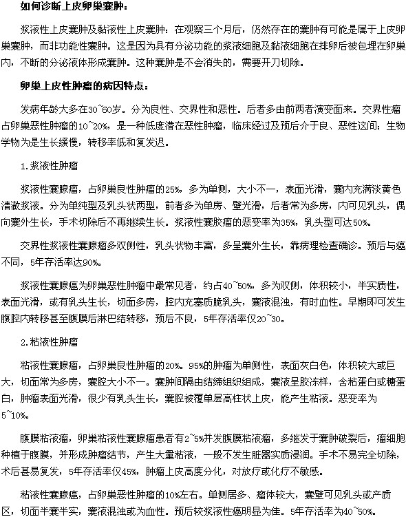 上皮卵巢囊腫如何診斷?有何病因特點?相信很多人都想知道,下面請大家仔細閱讀醫(yī)學(xué)教育網(wǎng)編輯專門為您整理的“上皮卵巢囊腫如何診斷?有何病因特點?”這篇文章吧。