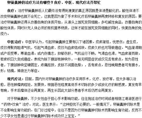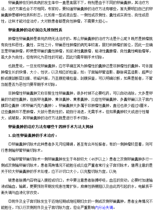卵巢囊腫的治療方法有哪些?相信很多人都想知道,那么卵巢囊腫的治療方法到底有哪些呢?相信大家看了下面這篇文章就會明白了。