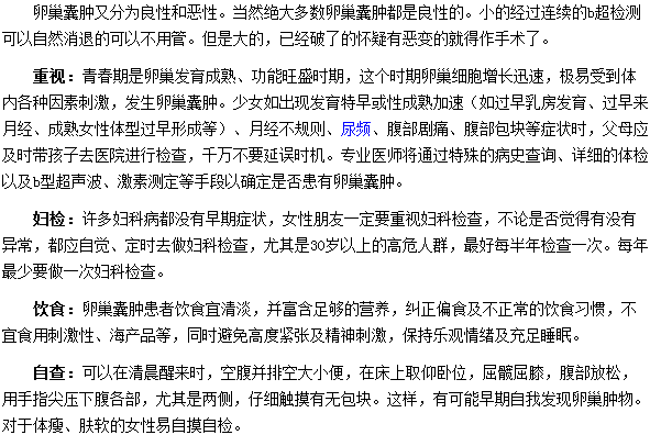 很多人都想了解預(yù)防卵巢囊腫的四大方法,為此,醫(yī)學(xué)教育網(wǎng)編輯特別整理了這篇關(guān)于預(yù)防卵巢囊腫的四大方法的文章,具體如下: