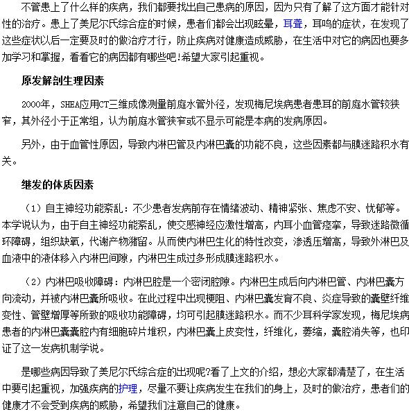 您想知道哪些病因導致了美尼爾氏綜合癥的出現(xiàn)嗎?相信您看了這篇有關哪些病因導致了美尼爾氏綜合癥出現(xiàn)的文章,您就了解了。