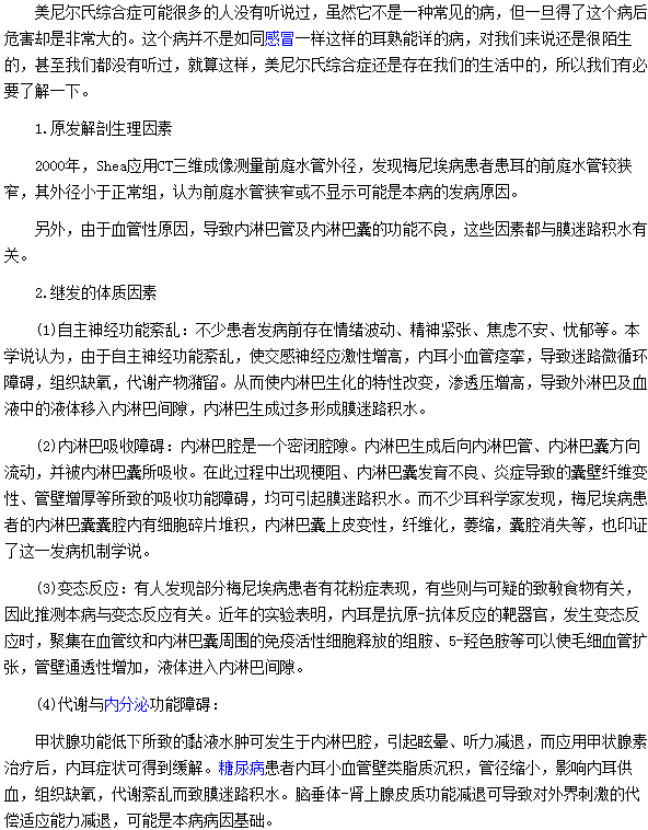 美尼爾氏綜合癥出現(xiàn)的發(fā)病機制是什么?相信很多人都想知道,醫(yī)學(xué)教育網(wǎng)編輯為您搜集整理了美尼爾氏綜合癥出現(xiàn)的發(fā)病機制的具體內(nèi)容,供您參考。