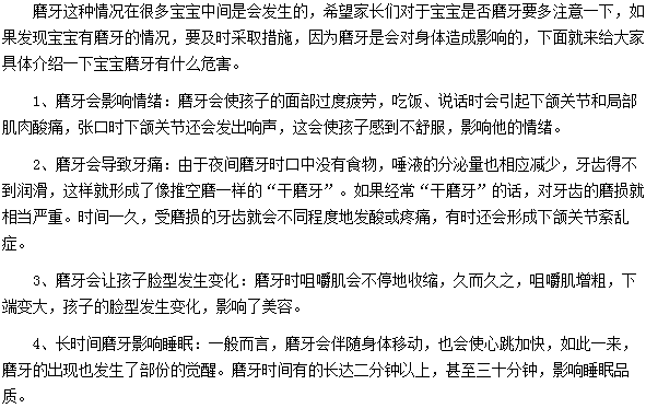 您想知道寶寶磨牙有什么危害嗎?相信您看了這篇有關(guān)寶寶磨牙有什么危害的文章,您就了解了。