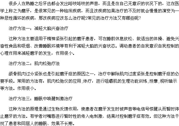 相信不少患有磨牙癥的朋友對(duì)常見(jiàn)的治療磨牙癥的方法三則很想要了解,那么,常見(jiàn)的治療磨牙癥的方法三則具體是什么呢?相信大家看了下面這篇文章就會(huì)明白了。