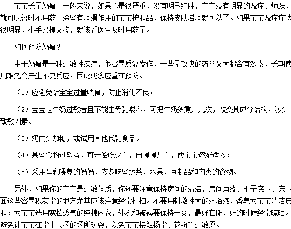 以上就是對“預防寶寶奶癬的五種措施”的介紹,希望對寶媽媽們有所幫助。如發(fā)現(xiàn)寶寶患了奶癬,應做到早診斷早治療,防止奶癬的發(fā)生。