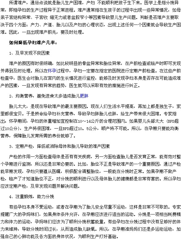 如何降低孕婦難產幾率?孕期預防難產吃什么?難產相信是準爸媽分娩時最害怕出現的意外,因為難產可能會危及媽媽和寶寶的生命,那么難產到底是什么?如何降低孕婦難產幾率?孕期預防難產吃什么?醫(yī)學教育網小編特整理了下面這篇文章分享給大家。