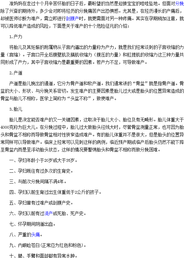 相信很多人都想知道導(dǎo)致孕婦難產(chǎn)的十個(gè)危險(xiǎn)因素是什么?醫(yī)學(xué)教育網(wǎng)編輯為您搜集整理了導(dǎo)致孕婦難產(chǎn)的十個(gè)危險(xiǎn)因素的相關(guān)文章,供您參考。