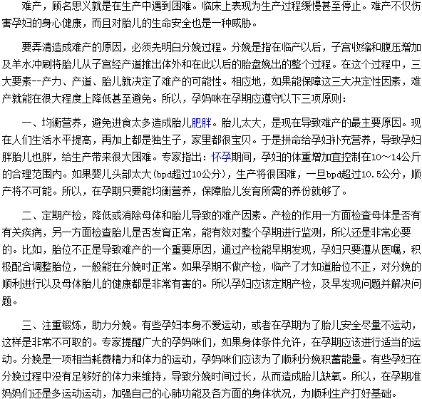 孕媽咪在孕期遵守三項(xiàng)原則可避免難產(chǎn),相信很多預(yù)產(chǎn)期臨近的孕媽媽都會(huì)擔(dān)心分娩時(shí)會(huì)不會(huì)難產(chǎn),下面醫(yī)學(xué)教育網(wǎng)特整理了孕媽咪在孕期遵守三項(xiàng)原則可避免難產(chǎn)的這篇文章,供大家參考。