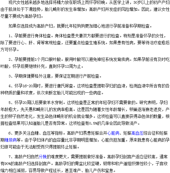 通過(guò)上述文章的介紹,我們對(duì)高齡產(chǎn)婦預(yù)防難產(chǎn)的七大注意事項(xiàng)有了一定的了解,高齡產(chǎn)婦一定要做好產(chǎn)前檢查,注重產(chǎn)前護(hù)理,做好一切心理準(zhǔn)備,盡量避免難產(chǎn)現(xiàn)象。