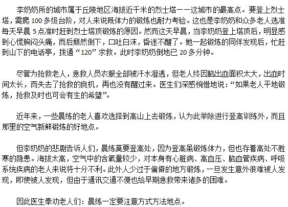 相信有很多人對于老年人晨練登高易腦出血比較感興趣,那么就請跟隨醫(yī)學(xué)教育網(wǎng)一起了解一下相關(guān)的內(nèi)容吧。