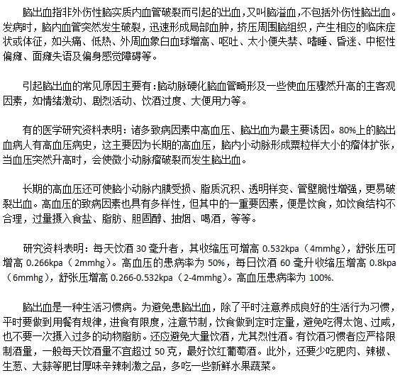 相信有很多人對(duì)于腦出血和飲酒的關(guān)系比較感興趣,那么就請(qǐng)跟隨醫(yī)學(xué)教育網(wǎng)一起了解一下相關(guān)的內(nèi)容吧。