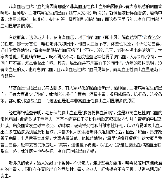 如果您或家人朋友患了非高血壓性腦出血,相信這篇關(guān)于非高血壓性腦出血的病因的文章會對您有幫助。