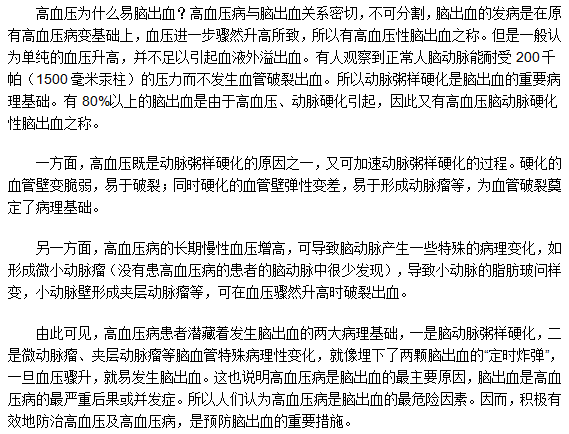 以上就是小編為您整理的有關高血壓為什么易腦出血的文章,相信大家在經(jīng)過對上文的閱讀后應該對于高血壓為什么易腦出血有了一定的了解,希望可以對大家有幫助。