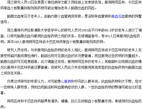 為什么小板聚集抑制劑類藥物會增加老年人腦出血的風(fēng)險?相信很多人都不清楚,那么為什么小板聚集抑制劑類藥物會增加老年人腦出血的風(fēng)險呢?相信大家看了下面這篇文章就會明白了。