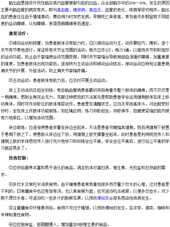 關(guān)于腦出血患者的康復(fù)治療及飲食控制的內(nèi)容,相信很多人都比較感興趣,醫(yī)學(xué)教育網(wǎng)編輯特撰文如下:
