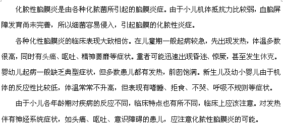 化膿性腦膜炎的癥狀主要是發(fā)熱,化膿性腦膜炎每個人發(fā)病特點(diǎn)各不相同,臨床上應(yīng)該多注意?;撔阅X膜炎的治療原則是要及早使用抗生素。治療越及時,恢復(fù)時間越短,發(fā)生后遺癥的概率越低,康復(fù)效果越好。