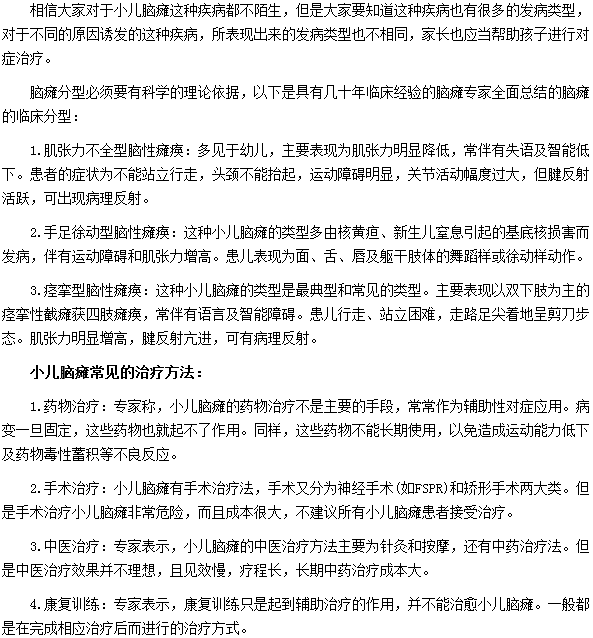 關(guān)于小兒腦癱常見的臨床分型及治療方法,相信很多人都比較感興趣,醫(yī)學(xué)教育網(wǎng)編輯特撰文如下: