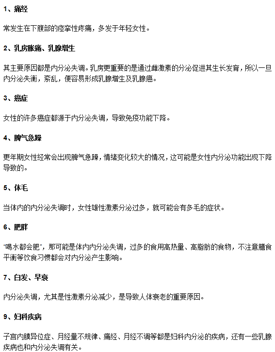 內(nèi)分泌失調(diào)將會引起女性的身體疾病的發(fā)生,如果嚴(yán)重的話,還將影響到身體其他器官的正常運作。痛經(jīng)、臉上長痘痘、這些都屬于內(nèi)分泌失調(diào)帶來的,醫(yī)學(xué)教育網(wǎng)編輯下面盤點了內(nèi)分泌失調(diào)對女性的9大危害。