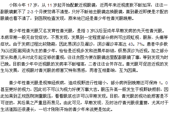 相信大家在看完由醫(yī)學(xué)教育網(wǎng)小編特地為大家編輯整理的以上內(nèi)容,大家都知道青光眼和近視它們兩者會(huì)互相影響了吧。