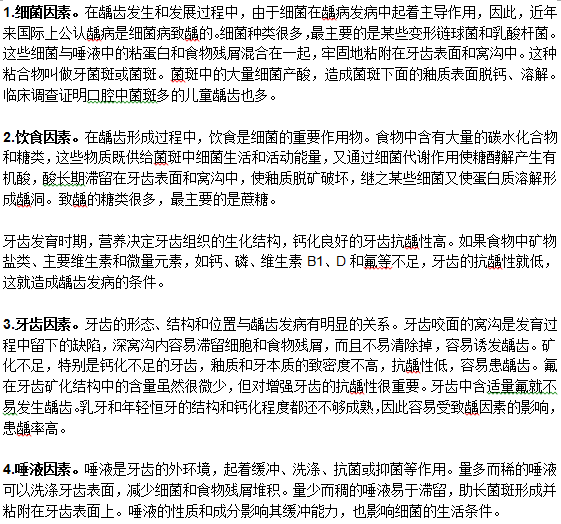 兒童患上齲齒的常見發(fā)病原因是什么,你知道嗎?相信這是很多家長(zhǎng)朋友都很關(guān)注的問題,下面醫(yī)學(xué)教育網(wǎng)小編特為大家整理了“兒童患上齲齒的常見發(fā)病原因是什么”的相關(guān)內(nèi)容,希望對(duì)大家有幫助。一般來說,兒童患上齲齒的常見發(fā)病原因主要包括四個(gè)方面:細(xì)菌、飲食、牙和唾液,四者相互關(guān)聯(lián),缺少一個(gè)方面都不能發(fā)生齲齒。