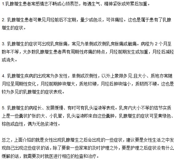 很多女生覺得生理期胸痛是非常正常,很少有人注意是否患有乳腺增生,現(xiàn)代女性要注意愛護(hù)自己,讓我們自己能夠遠(yuǎn)離乳腺增生。醫(yī)學(xué)教育網(wǎng)整理了“女性乳腺增生癥狀表現(xiàn)都有些什么”這篇文章,這篇文章總結(jié)了乳腺增生5種癥狀,希望對您有所幫助。