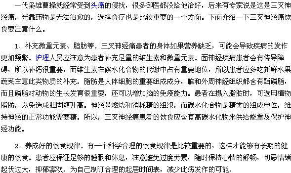 以上就是“患三叉神經痛的人應該如何飲食”的內容,要想減少三叉神經痛的發(fā)作,就一定要關注患者的飲食,同時要進行正確的治療,患者一方面要養(yǎng)成比較好的飲食規(guī)律,另一方面要及時補充各類微量元素。