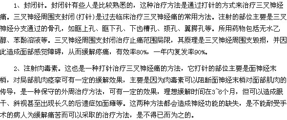 三叉神經(jīng)痛應(yīng)避免的傷害過大的治療方法有哪些?有很多朋友在忍受不了三叉神經(jīng)痛的時(shí)候,往往不再聽從醫(yī)生要采取正規(guī)成熟的治療方法,而采用一些傷害性過大的治療方法,那么,三叉神經(jīng)痛應(yīng)避免的傷害過大的治療方法有哪些?下面介紹幾種這樣的治療方法。