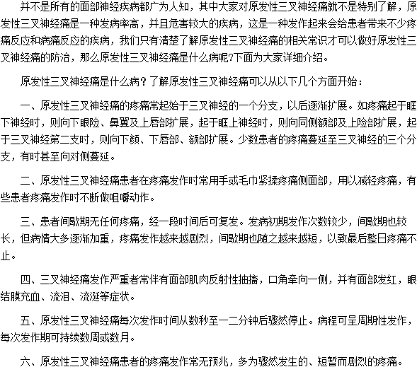 您想知道關(guān)于原發(fā)性三叉神經(jīng)痛要知道的六個(gè)方面具體是什么?相信您看了這篇有關(guān)原發(fā)性三叉神經(jīng)痛要知道的六個(gè)方面的文章,您就了解了。
