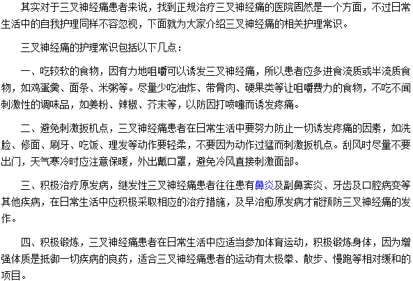 三叉神經(jīng)痛患者的日常護(hù)理包括哪些方面?相信大家已經(jīng)了解了,對(duì)于三叉神經(jīng)痛患者來說,日常護(hù)理同樣是不容忽視的,希望以上介紹對(duì)大家有所幫助。